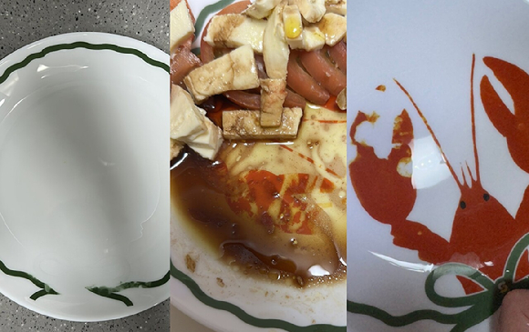 이 접시는 인쇄된 그림이 음식과 세척 과정에서 쉽게 벗겨지고, 심지어 인쇄물 자체가 녹아내리듯 퍼지고 있는데요, 이것은 제조과정의 문제 또는 품질 검증 미흡이 원인일 수 있어요.