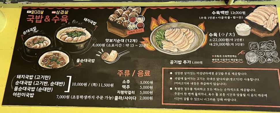 수육, 순대, 국밥, 백반 다 맛있다. 근데 이 날은 순대 국밥을 먹었으니, 순대 국밥을 중점적으로 소개하겠다.